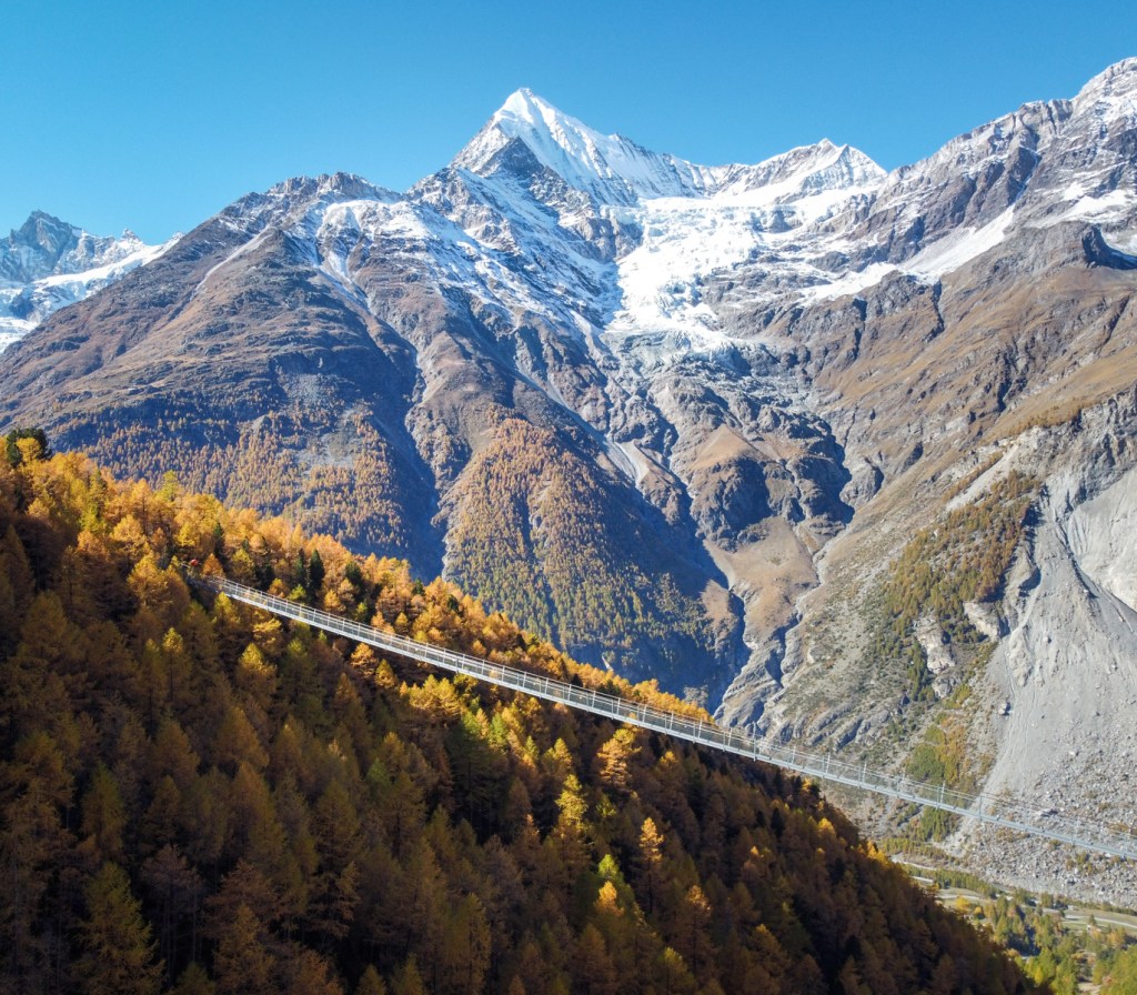 Depuis le pont vous profiterez également d’une vue imprenable sur le glacier du Bis ainsi que le Weisshorn.