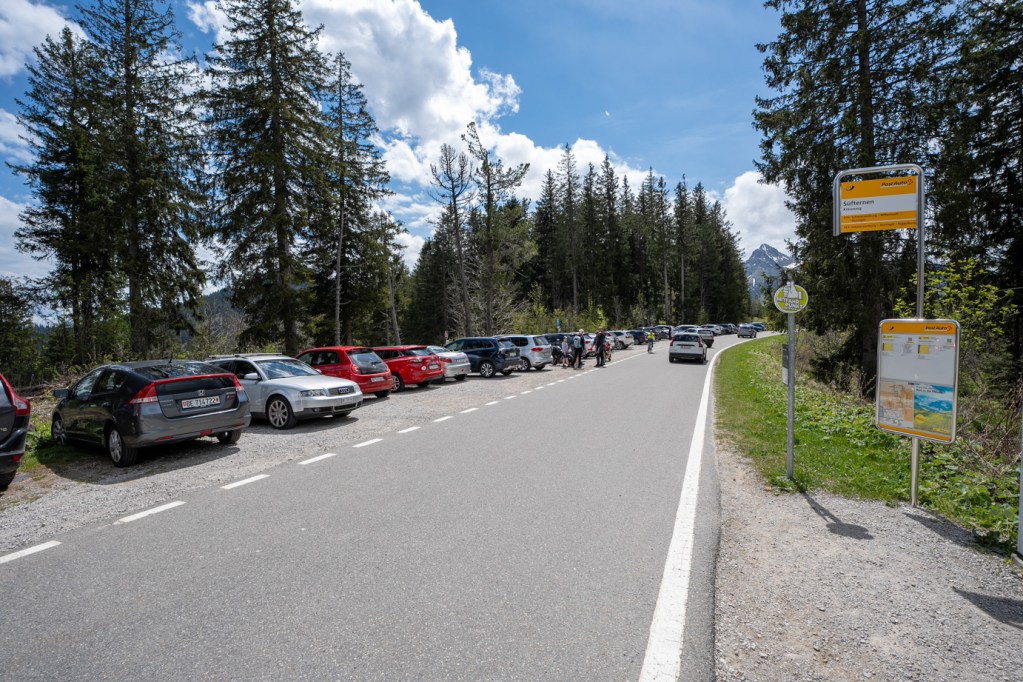 Nous nous sommes garés sur ce parking. Il est également possible de se rendre à cette randonnée en transport public en descendant à l’arrêt de bus Rüschegg Süfternen, Gäggersteg.