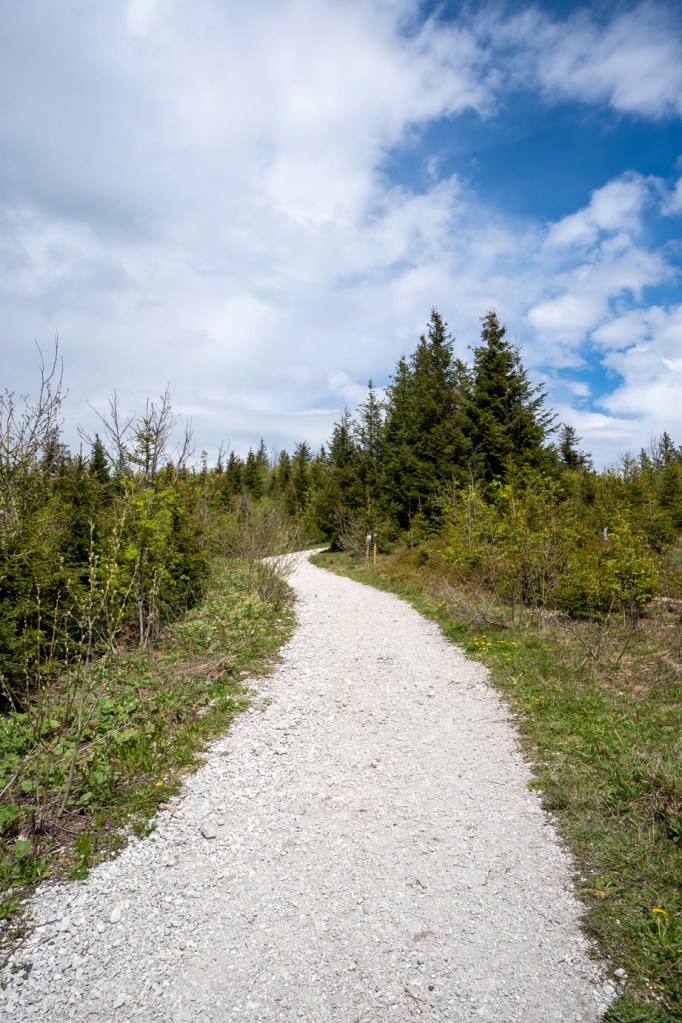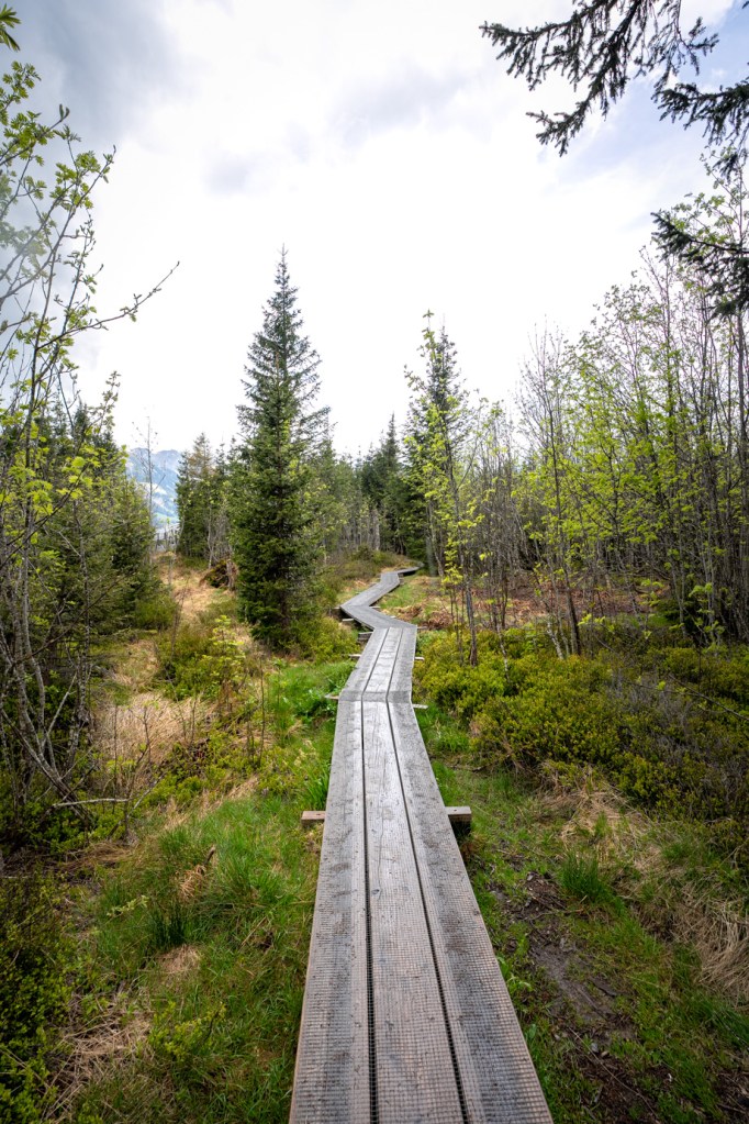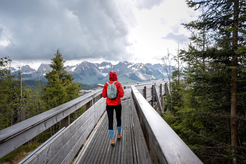 Plus on monte, plus la forêt se densifie. Une fois arrivé au sommet, vous pourrez emprunter les fameuses passerelles pou redescendre et profiter de la vue sur le Gantrisch.